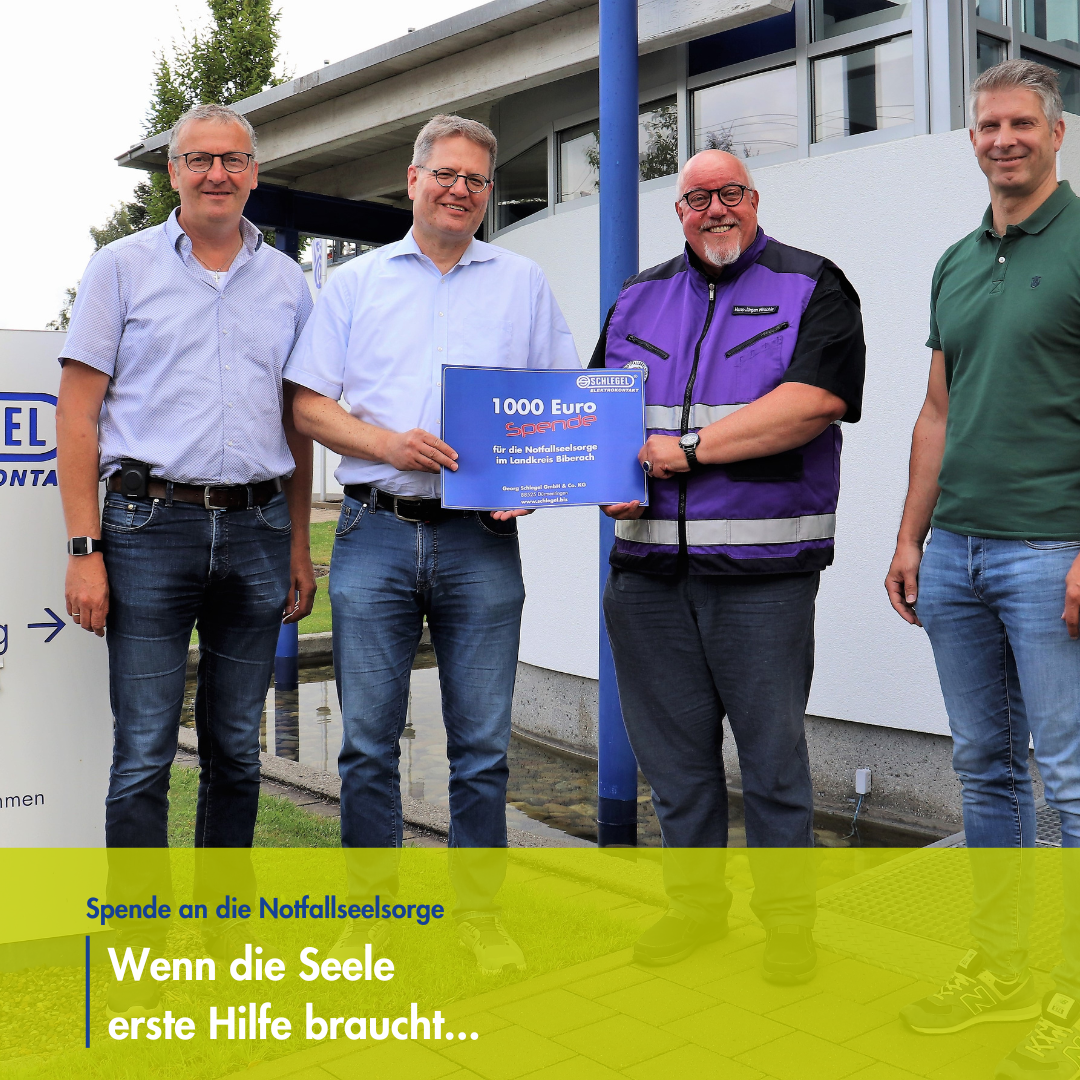 Das Dürmentinger Unternehmen Georg Schlegel hat 1000 Euro an die Notfallseelsorge des Landkreises Biberach gespendet. Nach dem Todesfall eines Mitarbeiters hat das Unternehmen selbst erfahren, wie wichtig dieser Dienst ist. „Das hat uns und den Mitarbeiterinnen...