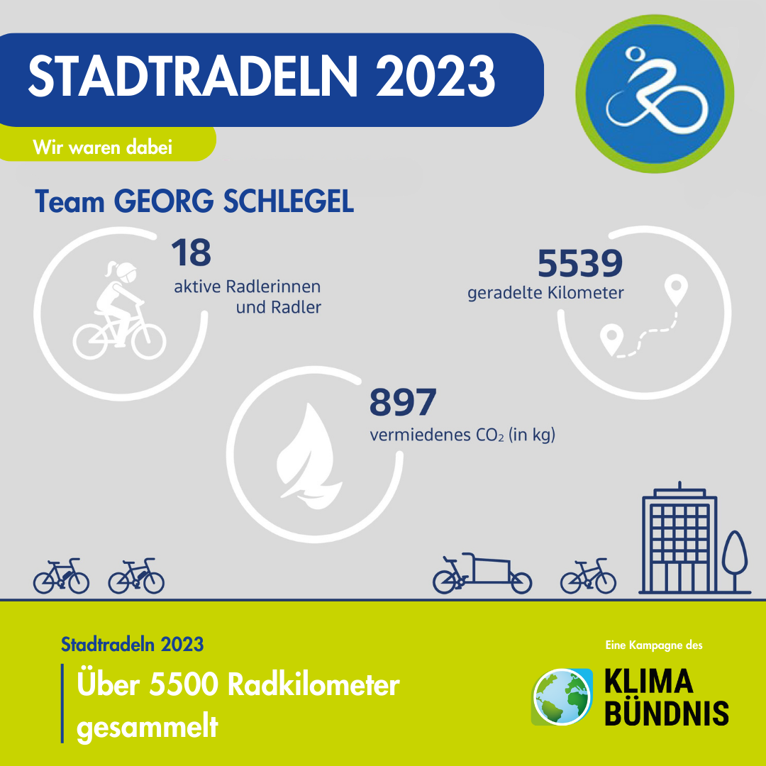 Erfolgreiche Kilometersammler: 18 Radlerinnen und Radler waren im Team GEORG SCHLEGEL beim Stadtradeln 2023 am Start. Über 5500 Kilometer wurden in 3 Wochen auf dem Rad abgespult. Damit haben die Schlegel-Mitarbeiterinnen und Mitarbeiter dazu beigetragen,...