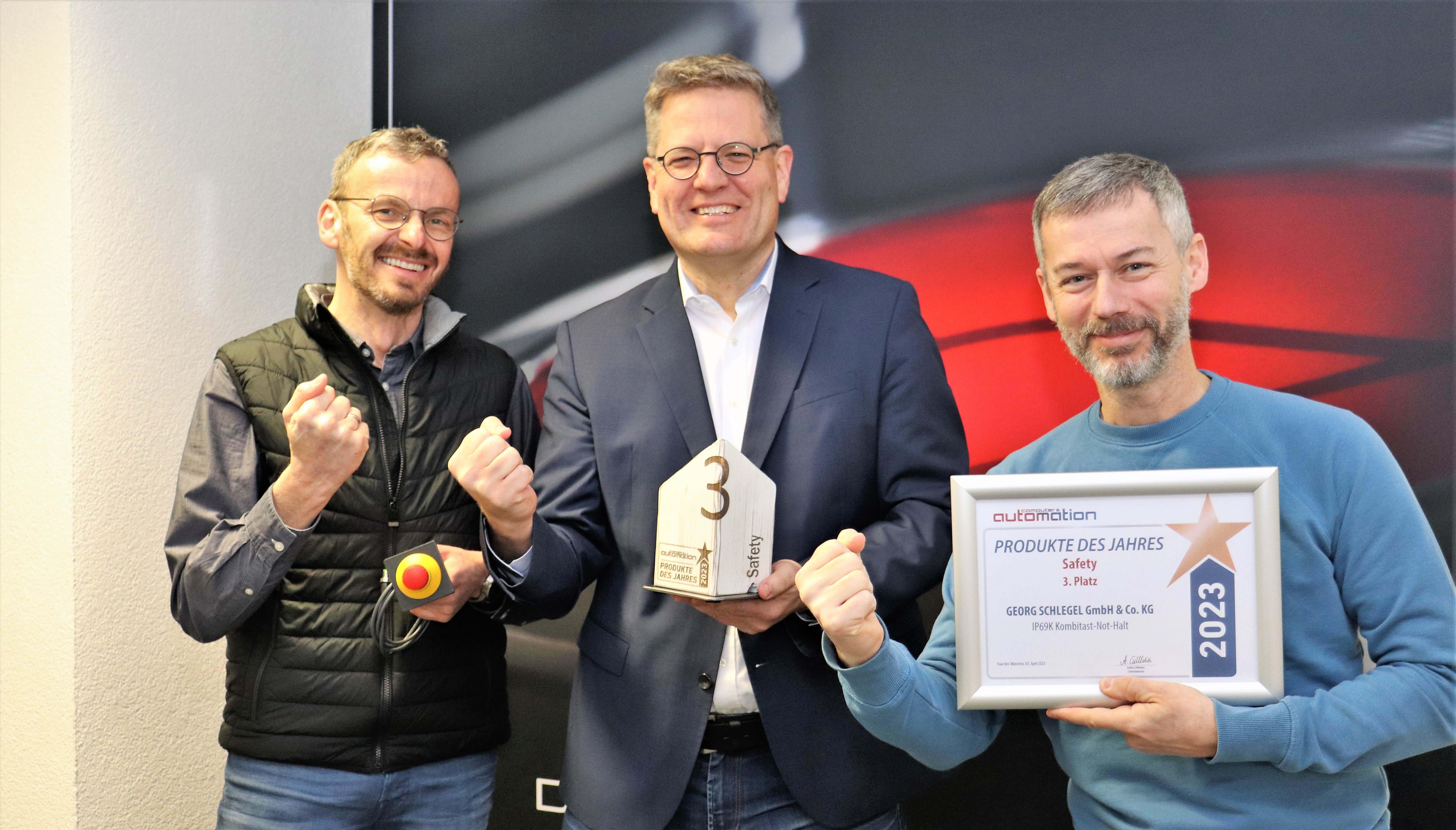 Der neue IP69K Not-Halt des Befehlsgerätespezialisten GEORG SCHLEGEL hat es bei der Wahl zum „Produkt des Jahres" aufs Treppchen geschafft. In der Kategorie „Safety" wurde der robuste Not-Halt von den Lesern der Zeitschrift „Computer & Automation"...