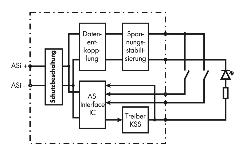 Als Übergang von der 2-adrigen Schaltlitze (AWG18) auf die ASInterface- Profilleitung stehen je nach Anwendungsfall verschiedene Möglichkeiten zur Verfügung.